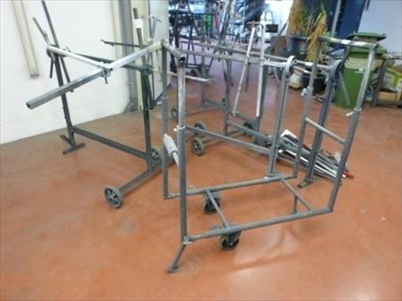 Chariots de peinture pour portes Dimensions d'un chariot : 160 cm x 79 cm x 125 cm Quantité : 4 Etat : bon Chariot de peinture Dimensions : 104 cm x 47 cm x 125 cm Etat : bon
