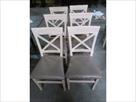 Chaises en bois Quantité : 6 Tissus en simili Dimensions : 46,5 cm x 38 cm x 89,5 cm Etat : usagé Remarque : certaines assises sont abimées