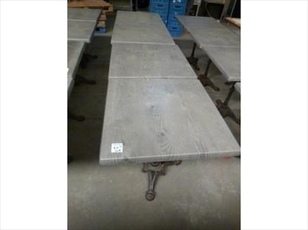 Tables bistro Quantité : 4 Tablette en mélaminé Piètement en métal Dimensions : 70 cm x 70 cm x 72,5 cm Etat : usagé