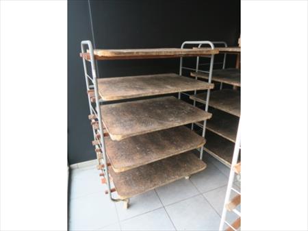 3 Chariots métalliques pour pain Quantité et dimensions : 1 x 53 cm x 155 cm x 157 cm 2 x 110 cm x 54 cm x 156 cm Etat : bon