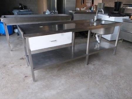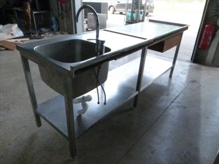 Plonge Evier simple bac Dimensions évier : 50 cm x 50 cm x 28 cm Dimensions totales : 230 cm x 70 cm x 90 cm Etat : non testé, utilisé Remarque : pas de bouchon dans l'évier
