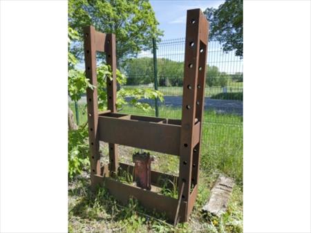 Presse hydraulique Dimensions d'encombrements : 142,5 cm x 47 cm x 229 cm Etat : oxydé et usagé, non testé Remarque : groupe hydraulique non - inclus, enlèvement à charge de l'acquéreur