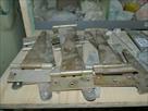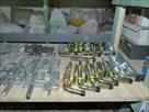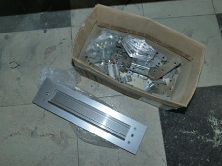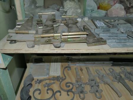 Quincaillerie, charnières, verrou, vérins Le contenu de 2 tablettes d'étagère en bois " voir photos" Remarque : certaines pièces sont neuves et d'autres sont usagées.
