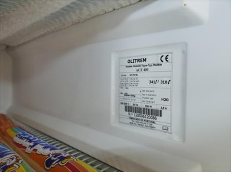 Congélateur verticale Marque : O Lm Modèle : ACE400 Tension : 230 V monophasé Puissance : 450 W Volume net : 310 L Dimensions totales : 62 cm x 63 cm x 182 cm Etat : bon, toujours en fonction