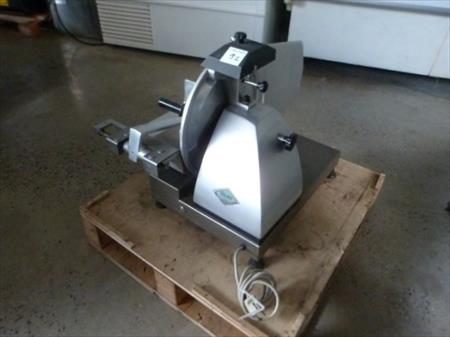 Trancheuse avec affuteur intégré Marque : Celme Electric Modèle : MPR350 Tension : 230 V monophasé Puissance : 250 W Diamètre : 35 cm Dimensions : 56 cm x 80 cm x 57 cm Etat : testé