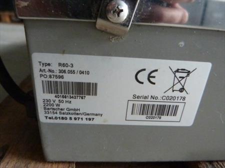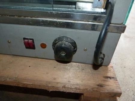 Armoire chauffante vitrée Marque : Bartscher Modèle : R60-3 Tension : 230 V monophasé Puissance : 2200 W Température de chauffe : 110 °C Dimensions : 120 cm x 50 cm x 79 cm Etat : non testé