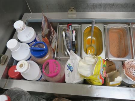 SALADETTE VRX1200/380 À RECONDITIONNER, PLANCHES À DÉCOUPER EN BOIS D'OLIVIER, ÉPICES, CONSOMMABLES