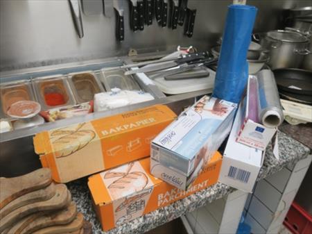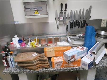 Planches à découper en bois d'olivier, solde d'épices, consommables divers, couteaux et portes couteaux, bacs, ...
