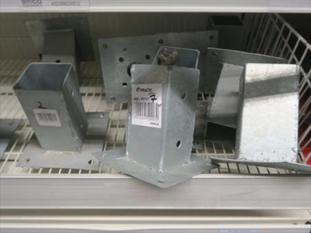 Equerres zinguées, plaque d'assemblage, pieds piquet porteur