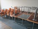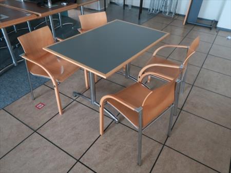 TABLES ET CHAISES EN MÉLAMINÉ AVEC TABLETTES EN BOIS