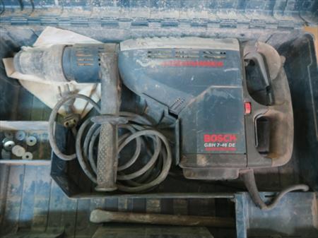 Marteau-burineuse Marque : Bosch Modèle : GBH 7-46DE Année : 2008 Tension : 230 V monophasé Puissance : 1350 W Inclus : une pointe, un burin, 2 mèches à béton (22mm, 28mm) Etat : testé