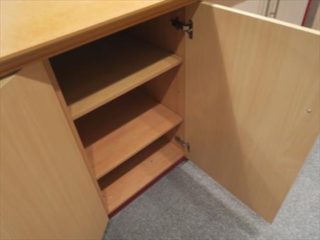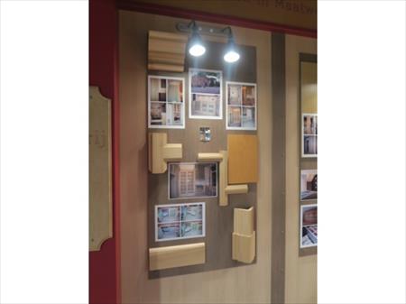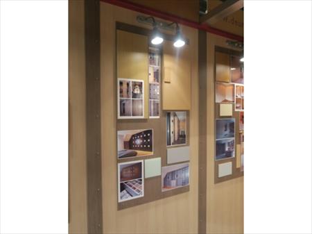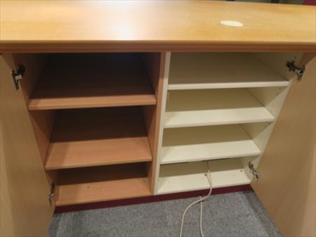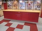 COMPTOIR EN MÉLAMINÉ AVEC TABLETTE EN MDF, PANNEAUX MURAUX, LUMINAIRES