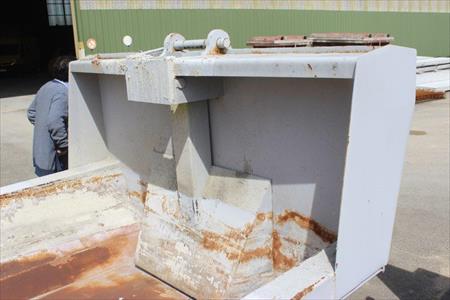 CAISSON BENNE POUR RETOUR BETONTout Hardox 450 ép.6mm Berce en IPN 200mm porte simple vantail tablier poussoirrouleaux extérieurs 6000mm2300mmx450mm (ETAT NEUF)