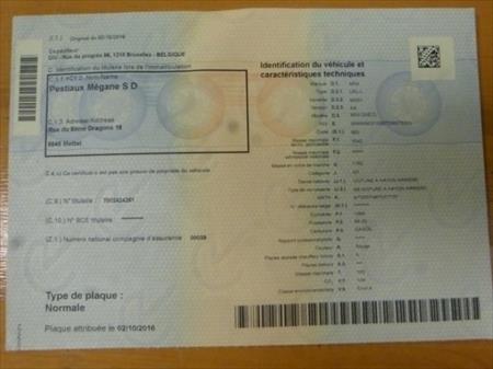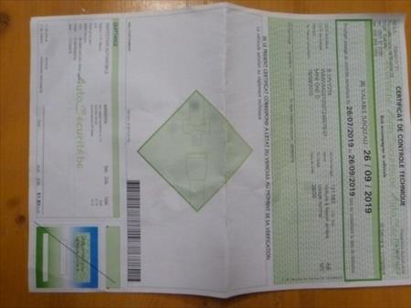 - Certificat de visite du contrôle technique (valable jusqu'au 26 /09/2019)