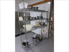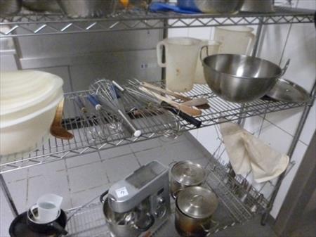 Etagère Dimensions : 152 cm x 46 cm x 185 cm Démontable Contenu ; 1 Robot Kenwood à réparer Ustensiles de cuisine; fouets, louches, casseroles, récipients divers, ...