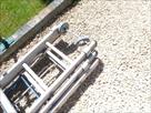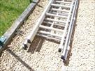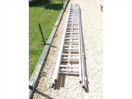 Echelle triple éléments Santor Nombre d'échelons : 3 x 15 Dimensions fermée : 400 cm x 55 cm Etat : coup dans 1 montant