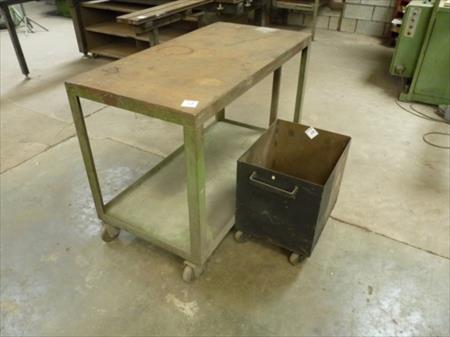 Chariot sur roulettes métallique Dimensions du chariot : 121 cm x 60 cm x 85 cm Quantité : 1 Bac à déchets Dimensions : 46 cm x 38 cm x 50 cm Quantité : 1