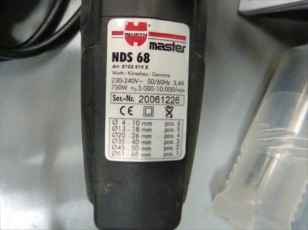 Perceuse pour carreaux Marque : Wurth Modèle : NDS68 Tension : 220 V monophasé Puissance : 750 W Diamètre : 4 mm à 68 mm Machine fournie dans son coffret d'origine avec une mèche de 8 mm et 10 mm Pulvérisateur inclus