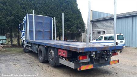 Porteur Full pneumatique et plateau de 7m40. Remorque plateau 3 essieux ADOC du 15/11/2010. Monte pneumatiques en 285/70 R19.5. PTC maxi = 32T.
