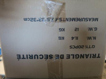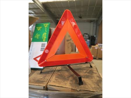Triangles de sécurité Marque : Geomedia Quantité totale : 420 pièces (22 caisses) Dimensions de la palette : 80 cm x 110 cm x 130 cm Lot sur palette Etat : neuf