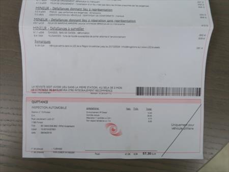 - Certificat de visite du contrôle technique (carte rouge valable jusqu'au 23/04/2019)