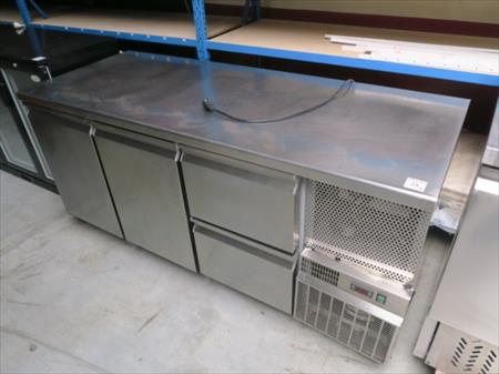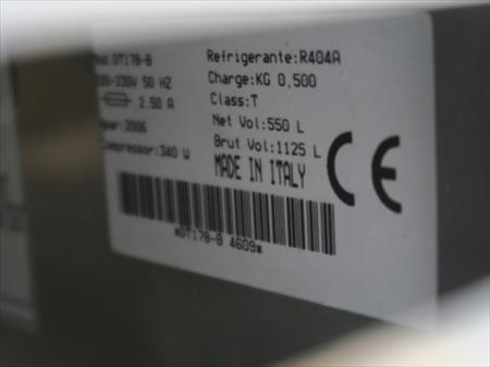 Armoire frigorifique 2 portes 2 tiroirs Modèle : DT178-B Année : 2006 Tension : 230 V monophasé Puissance : 340 W Gaz réfrigérant : R404 a Quantité de gaz : 500 g Classe environnementale : T Capacité : 550 L Dimensions totales : 178 cm x 70 cm x 84 cm Etat : a démarré