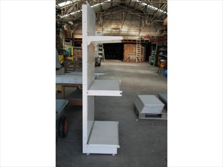 Etagère murale Dimensions : 7 m 10 pieds 10 montants H 210 cm 21 plateaux (pour étagère) 100 cm x 45 cm 30 panneaux de fond 34 supports pour les plateaux