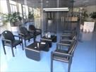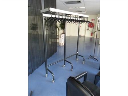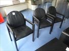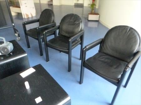 Chaises avec accoudoirs non empillables Quantité : 6 Tables basses Dimensions : 72 cm x 60 cm x 41 cm Quantité : 2 Porte-manteaux Dimensions : 160 cm x 40 cm x 182 cm Fournis avec une radio CD Etat : utilisé