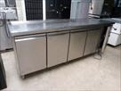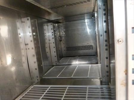Meuble frigorifique en inox Marque : Modèle : GN41100TN Tension : 230 V monophasé Puissance : 450 W Gaz réfrigérant : R134A Quantité de gaz : 250 Gr Dimensions : 223 cm x 70 cm x 86 cm Etat : testé Remarque : présence de coups sur la tablette principale