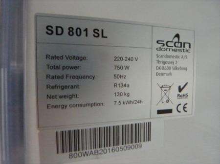 Réfrigérateur vitrine sur roulettes pour boissons Marque : Scan domestic Modèle : SD801SL Tension : 230 V monophasé Puissance : 750 W Type de gaz réfrigérant : R134A Dimensions : 101 cm x 65 cm x 202 cm Etat : testé, semble fonctionné