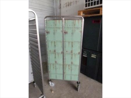 Chariots métalliques sur roulettes pour plateaux Quantité : 2 Dimensions d'un chariot : 75 cm x 56 cm x 175 cm Etat : usagé