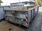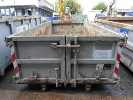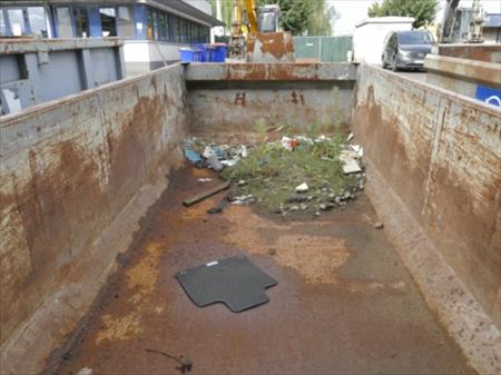 Container de chantier Marque : ANG Dimensions intérieurs : 489 cm x 200 cm x 100 cm Volume : 10 m³ Type de porte : Battantes Remarque : Usagé, oxydé, divers coups et griffes, reste de déchets, 2 roues arrières Référence : 6087 Etat : Correcte