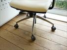 BUREAU DE DIRECTION, 2 SIÈGES EN CUIR BLANC, ARMOIRES MÉTALLIQUES, ÉTAGÈRE VITRES, TÉLÉVISION ARESLINE