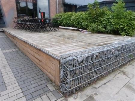 Terrasse Plancher de terrasse avec bois de coffrage en panneaux Dimensions des panneaux : 140 cm x 110 cm x 4 cm Quantité : 18 Dimensions des panneaux : 140 cm x 86 cm x 4 cm Quantité : 3 Remarque : côté à rue Démontage à charge de l'acquéreur, la sous structure de la terrasse doit également être emportée