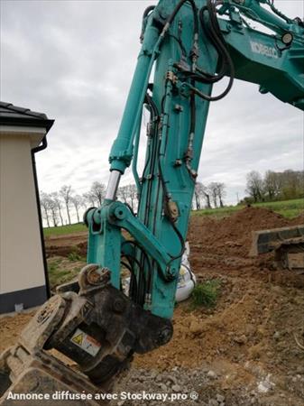 PELLE A CHENILLES KOBELCO SK 140 SRLC-3 LAME FLECHE DEPORT GAUVRY - LAME - PATINS DE 700 + SURPATINS CLIPSE - CHAINES 70% BONNES - BARBOTINS 70 % BON - GALETS ROUES 70 % BON - ATTACHE GEITH NEUVE + 1 GODET NEUF - EMBOUTIE AR GAUCHE - CONTRE POID ADDI - GRAISSAGE BEK