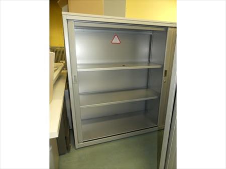 Certaines armoires ont 1 ou plusieurs tablettes intérieures manquantes, les grandes armoires n'ont pas de tablettes intérieures, pas de clé