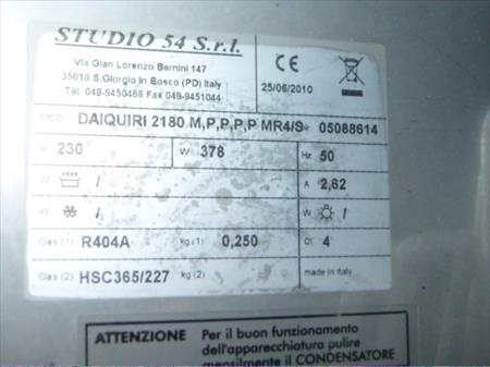 Armoire frigo 4 portes Marque : Diamond Modèle : Daiquiri 2180 Tension : 220 V monophasé Puissance : 378 W Gaz rérigérant : R404A Quantité : 250 gr Dimensions totales : 216 cm x 70 cm x 84 cm Etat : testé et en état de fonctionnement