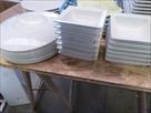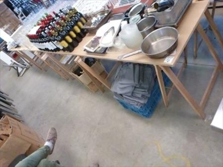 Remarque : lot tel que sur photos, tréteaux non inclus, chemins de table inclus, prévoir un contenant pour l'enlèvement