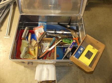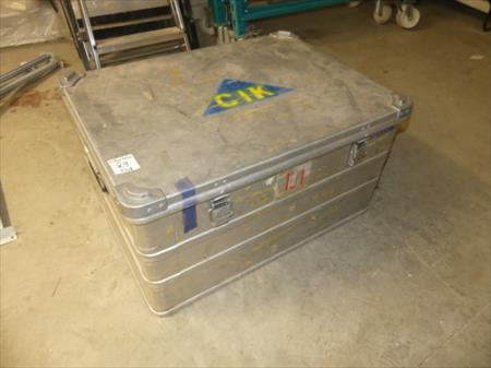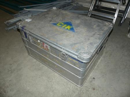 Malle de transport en aluminium Marque : Mercura Dimensions totales : 77 cm x 58 cm x 40 cm Etat : bon Remarque : contenu inclus