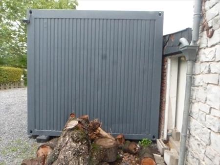 Le centre du container se trouve à +/- 25 mètres du mur de clotûre, l'accès devant se faire via le chemin de halage.