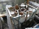 Pots de fleurs suspendus en terre cuite Marque : Potterie! Quantité : +/- 20 Dimensions du bac : 62 cm x 81 cm x 110 cm Etat : neuf Remarque : 4 modèles différents