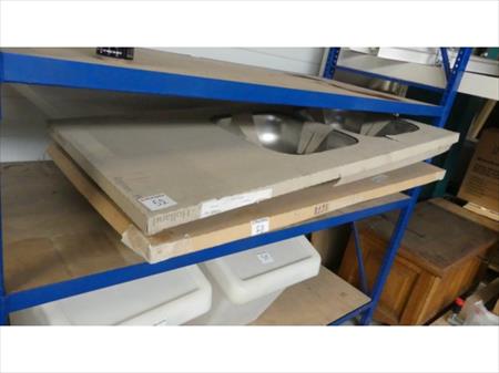 Bacs evier simple et double Bac évier simple Dimensions intérieures du bac : 33 cm x 39 cm x 13 cm Quantité : 1 Etat : neuf Bacs à eviers double Dimensions intérieures d'un bac : 33 cm x 40 cm x 12 cm Quantité : 2 Etat : neuf Remarque : Rack métallique non inclus