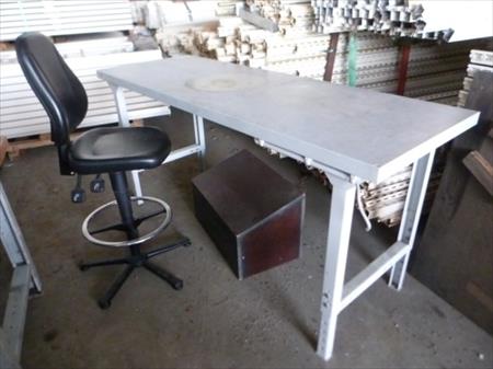 TABLE ÉTABLI, CHAISE HAUTE, POSE PIED
