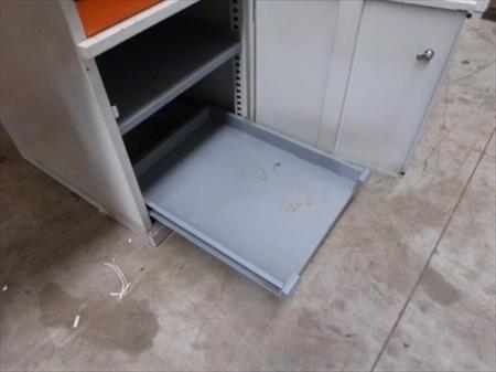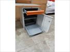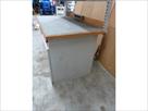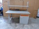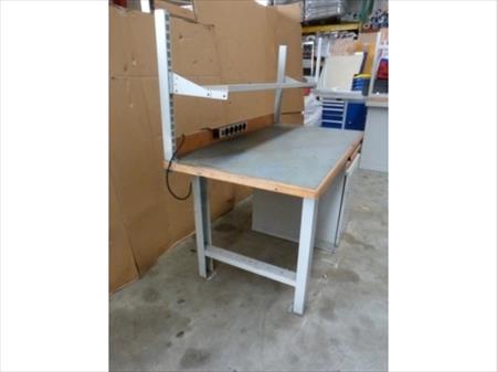 Table de travail avec 1 tiroir, 1 porte ouvrante et étagère frontale Dimensions totales : 152 cm x 83 cm x 152 cm Hauteur du plan de travail : 83 cm Etat : utilisé