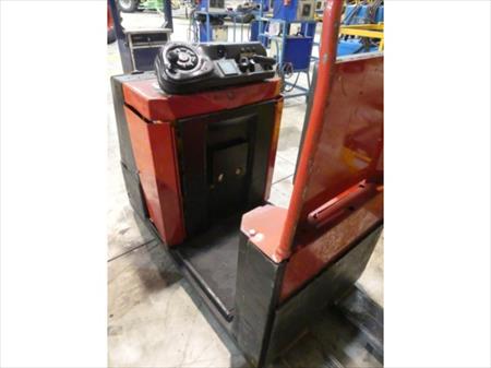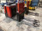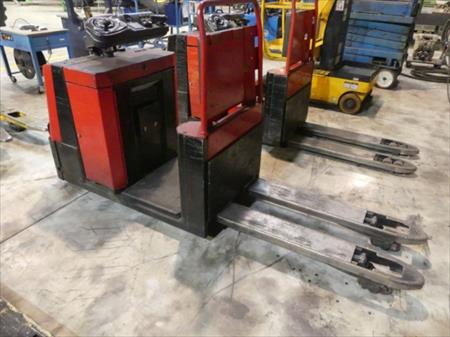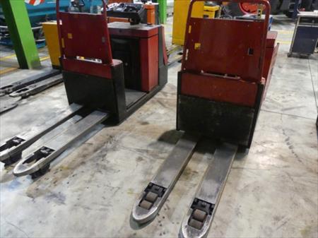 Transpalettes électrique avec accompagnateur chargé Longueur des fourches : 115 cm Dimensions totales : 78 cm x 270 cm x 136 cm Quantité : 2 Etat : non testé, à reconditionner, sans chargeur de batterie