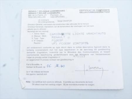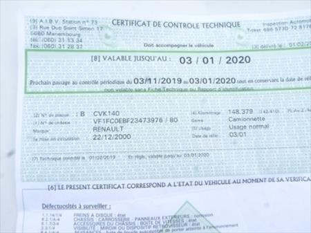 - Certificat de visite du contrôle technique (valable jusqu'au 03 /01/2020)