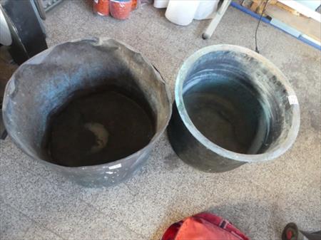 Cuvelles en cuivre : Diamètre et hauteur : 1 x 65 cm x 50 cm 1 x 60 cm x 47 cm Remarque : enlèvement et chargement à charge de l'acquéreur, se trouve au premier étage