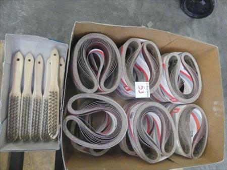 Bandes abrasives pour ponceuse, brosse de fer Bandes abrasives pour ponceuse Marque : VSM Modèle : KK711X Type de grain : 80 Gr Dimensions d'un ruban : 5 cm x 86,5 cm Quantité : 17 x 10 pièces Etat : neuf Remarque : lot sur palette, palette non incluse, brosses de fer (6 pièces) incluses, lot tel que sur photos