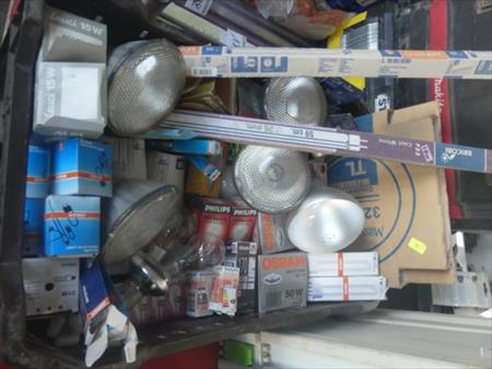 lot d' éclairage divers Type d'éclairage : Néon, Halogène, Quantité : le contenu du bac en pvc Etat : neuf Remarque : lot tel que sur photos, bac pvc non inclus