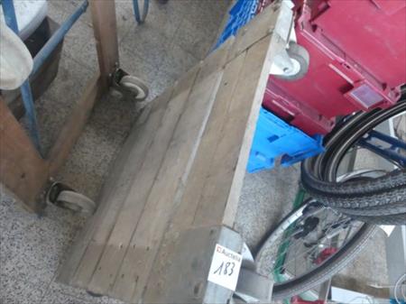 Houten trolleys Quantité : 2 Dimensions d'un chariot : 72 cm x 80 cm x 18 cm Etat : bon Remarque : lot tel que sur photos, tables non incluses